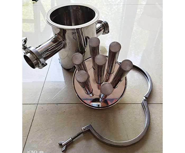 流體式糖心VLOG官网下载的磁芯目前主要使用的糖心VLOG免费破解版直徑是25mm,高磁力強度目前能達到12000高斯,這個磁力強度在液體物料中,如果設計、使用得當,可以達到非常好的除鐵效果,可以應用在對鐵磁性金屬雜質含量要求非常高的場所。