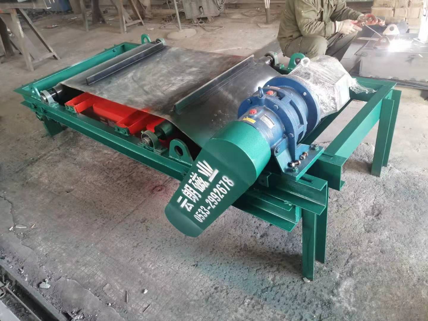 由高性能永磁磁芯、棄鐵皮帶、減速電機、框架、滾筒等部分組成,與各種輸送機配套使用。用於從非磁性物料中自動清除0.1—35公斤重的鐵磁性物質。其內部磁路采用計算機模擬設計、完善的雙磁的結構,保障整機在惡劣環境中無故障長期運行。